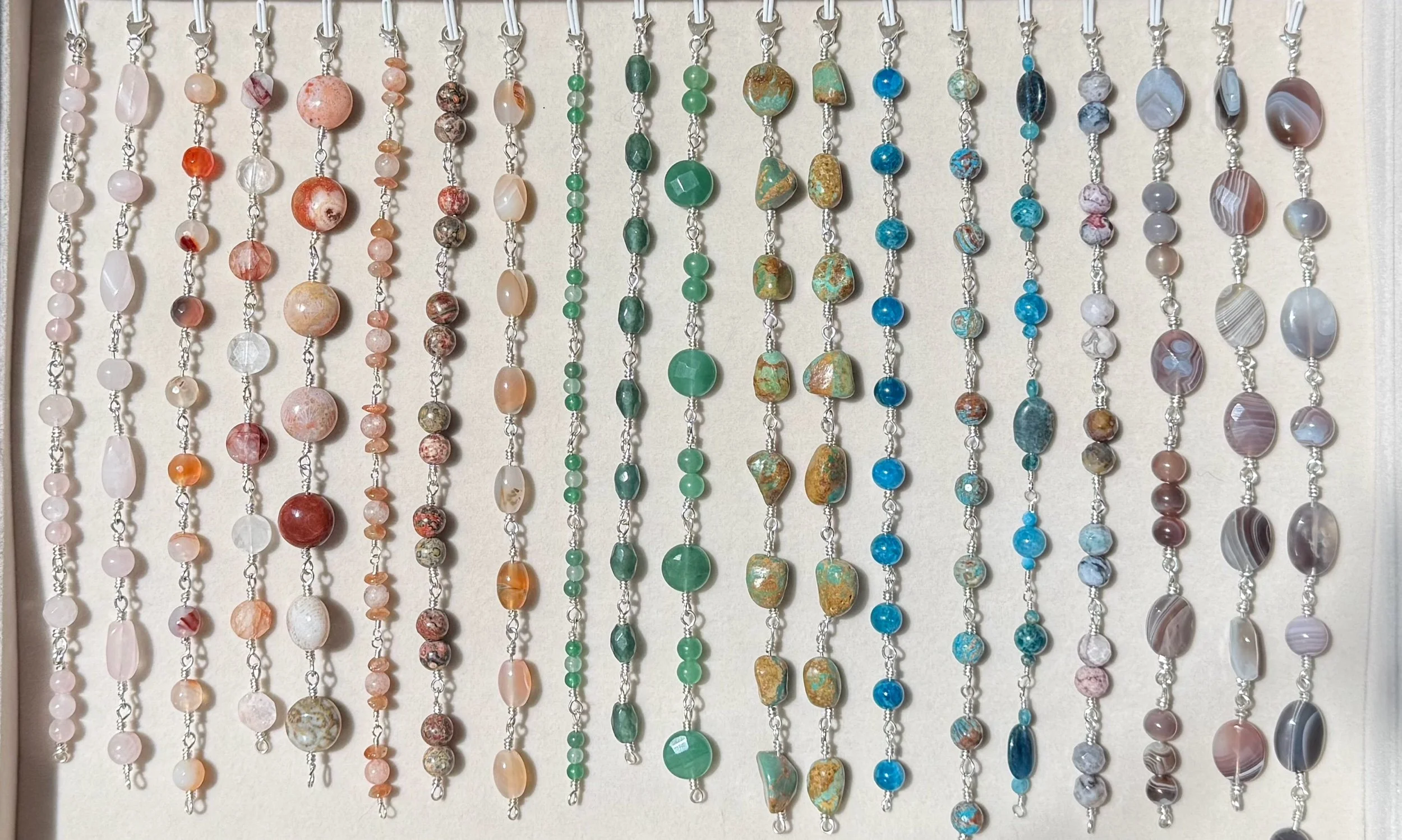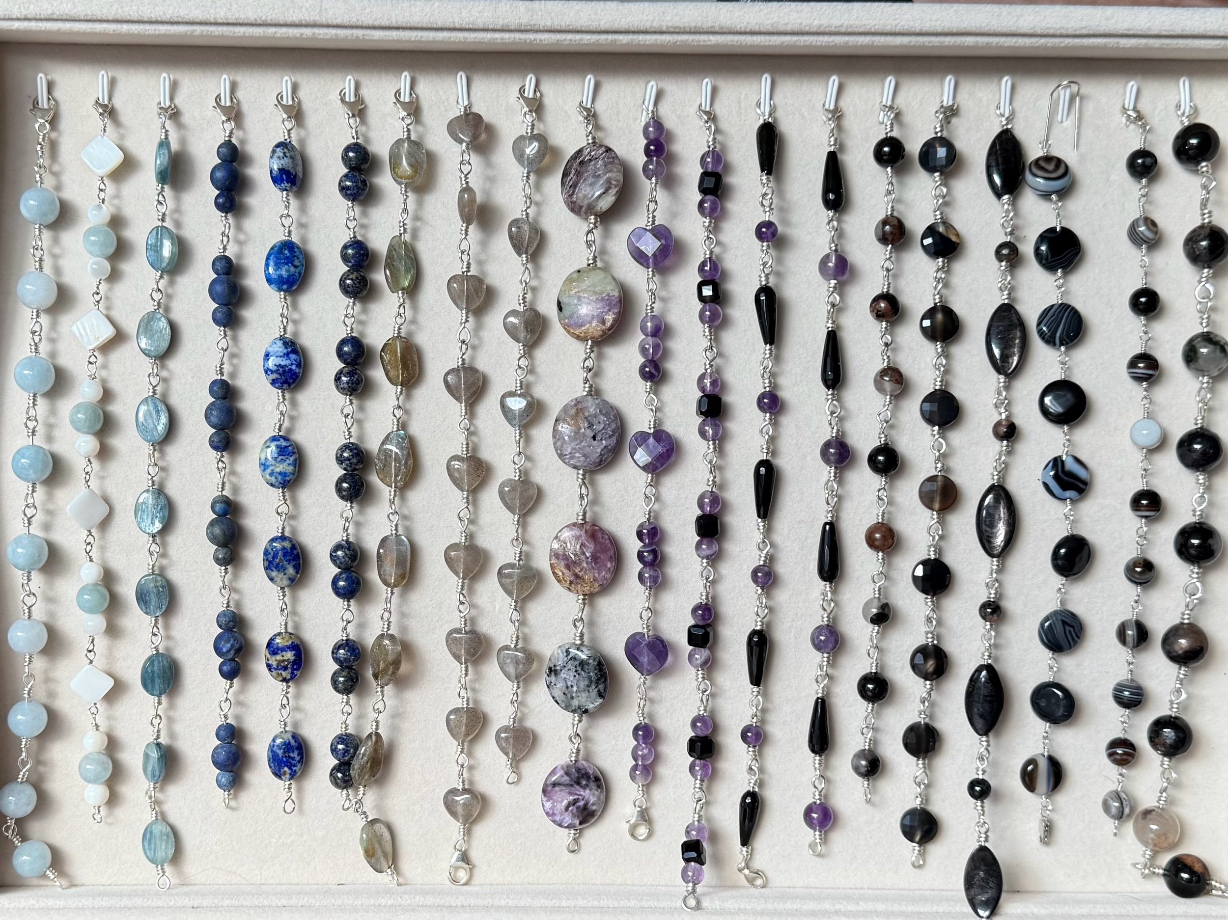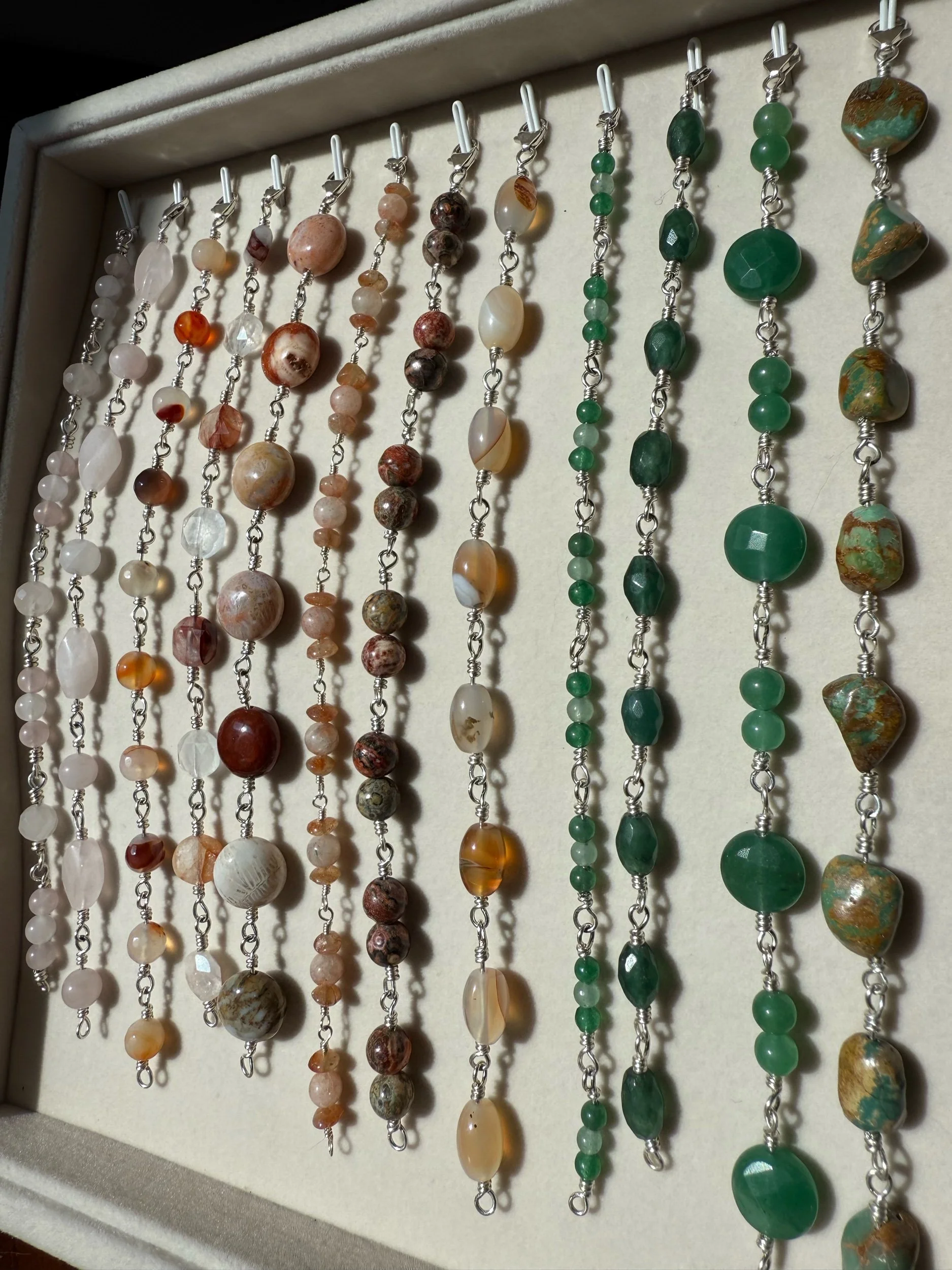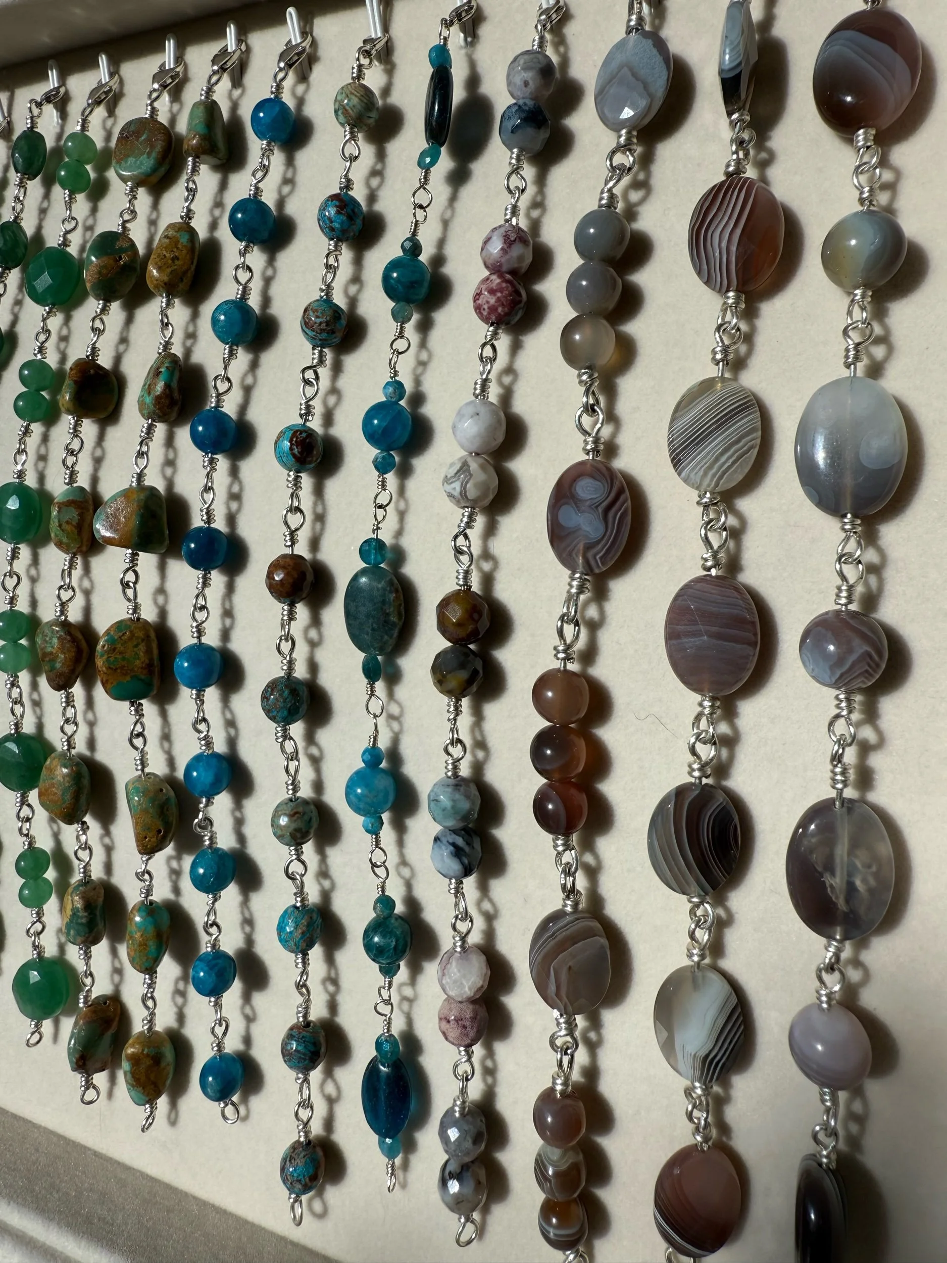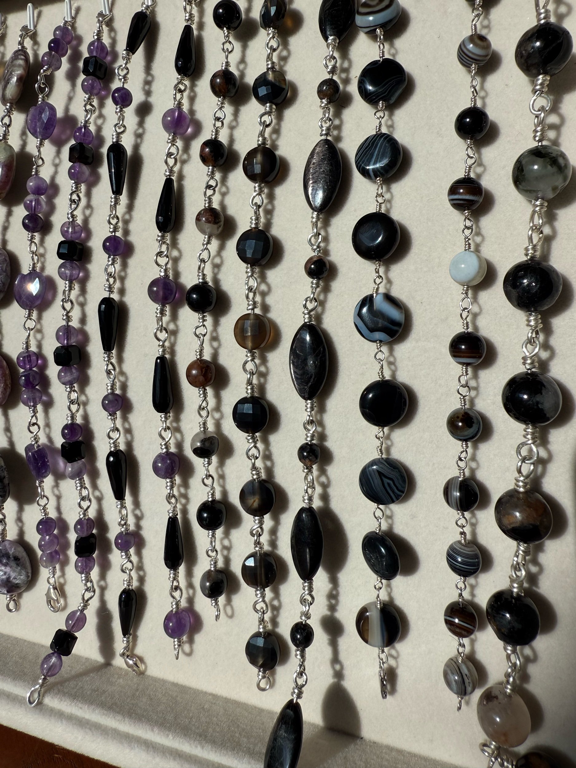 Shop Categories: All Earrings Necklaces Bracelets Rings All | Earrings | Necklaces | Bracelets | Rings | Link bracelets $38.00 Link bracelets $38.00 Crescent Moon Pendant $38.00 Dendritic Agate Pendant $38.00 Chrysanthemum Stone on Sterling Silver $38.00 Mookaite on Silk and Sterling Silver $38.00 Jasper Pendant on Sterling Silver $38.00 Czech Glass Necklace $54.00 Pineapple Quartz Teardrops on Sterling Silver $12.00 Fluorite and Opalite on Sterling Silver $18.00 Rhodochrosite on Sterling Silver $38.00 Pisolite on Sterling Silver $38.00 Lapis Lazuli on Sterling Silver $38.00 Natural Emerald on Sterling Silver $38.00 Peace Jasper on Sterling Silver $38.00 Carnelian on Sterling Silver $38.00 Dragon Vein Agate on Sterling Silver $38.00 Rhyolite on Sterling Silver $38.00 Rhyolite and Rhodochrosite on Sterling Silver $38.00 Green Aventurine on Sterling Silver $38.00